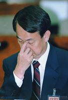 공동기자회견을 하는 권영길과 IMF국제금속노련사무총장 말렌타키와 ILO국제자유노련 담당국제국장 가이 라이더