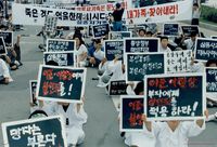 - 주한미군 범죄 근절을 위한 운동본부 소속회원 2백여 명이 서울역 광장에서 "미군 범죄 규탄을 위한 시민대회" 를 갖던 도중 출동한 경찰에 의해 강제해산 되고 있다.