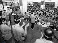 침묵하는 최규하에게 증언을 요구하는 경실련 회원들