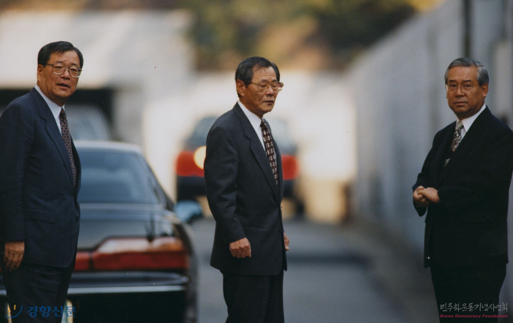 연희동 전 전두환 대통령 자택 앞에 모습을 보인 이원홍 변호사와 이양우 전 문공부장관, 장세동 전 안기부장