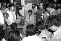5.18 특별소위원회 구성문제를 협의하고 있는 국회 법사위의 박희태 위원장과 민자당 변정일, 국민회의 조홍규 간사