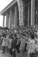 - 전국교직원노동조합 탄압저지 및 합법성 쟁취를 위한 범국민대회에 참석했던 한 여교사가 경찰에의해 호송차에 실려 연행되어서도 구호를 외치고있다.