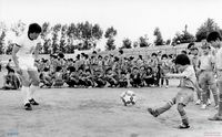 위수령으로 서울대학에 주둔한 군인들이 학교를 떠나기 전 교정을 청소하는 모습