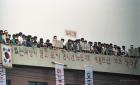 "자유, 자율, 자성" 이라는 현수막을 붙이고 단식농성 중인 충남대학교 투쟁학생들