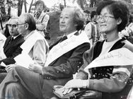 시위 도중에 학생들이 공연하는 탈춤을 보는 학생들