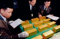 시청 앞에서 일본 상품을 불태우는 시위대와 이를 말리는 경찰