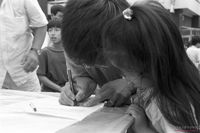 고 육영수 여사의 분향소에 향을 올리는 어린 여학생들