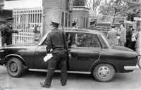 문세광의 첫 공판을 보기 위해 온 사람들에 대해 검문검색을 하고 있는 경찰들