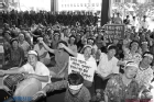 농조폐지 결사반대를 외치며 가두행진하는 농민들