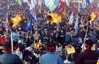 여의도 농민대회에서 경찰에 맞서 극렬대응하는 농민들