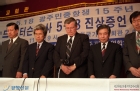 - 공노대 소속근로자 7천여명이 27일밤 임투결의대회를 마치고 한국통신노조 간부들이 농성중인 서울 명동성당으로 가려다 입구에서 경찰이 입구를 원천봉쇄하자 구호를 외치고 있다.