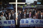 서울역 광장을 가득 메우고 구호를 외치는 민주노총 조합원들