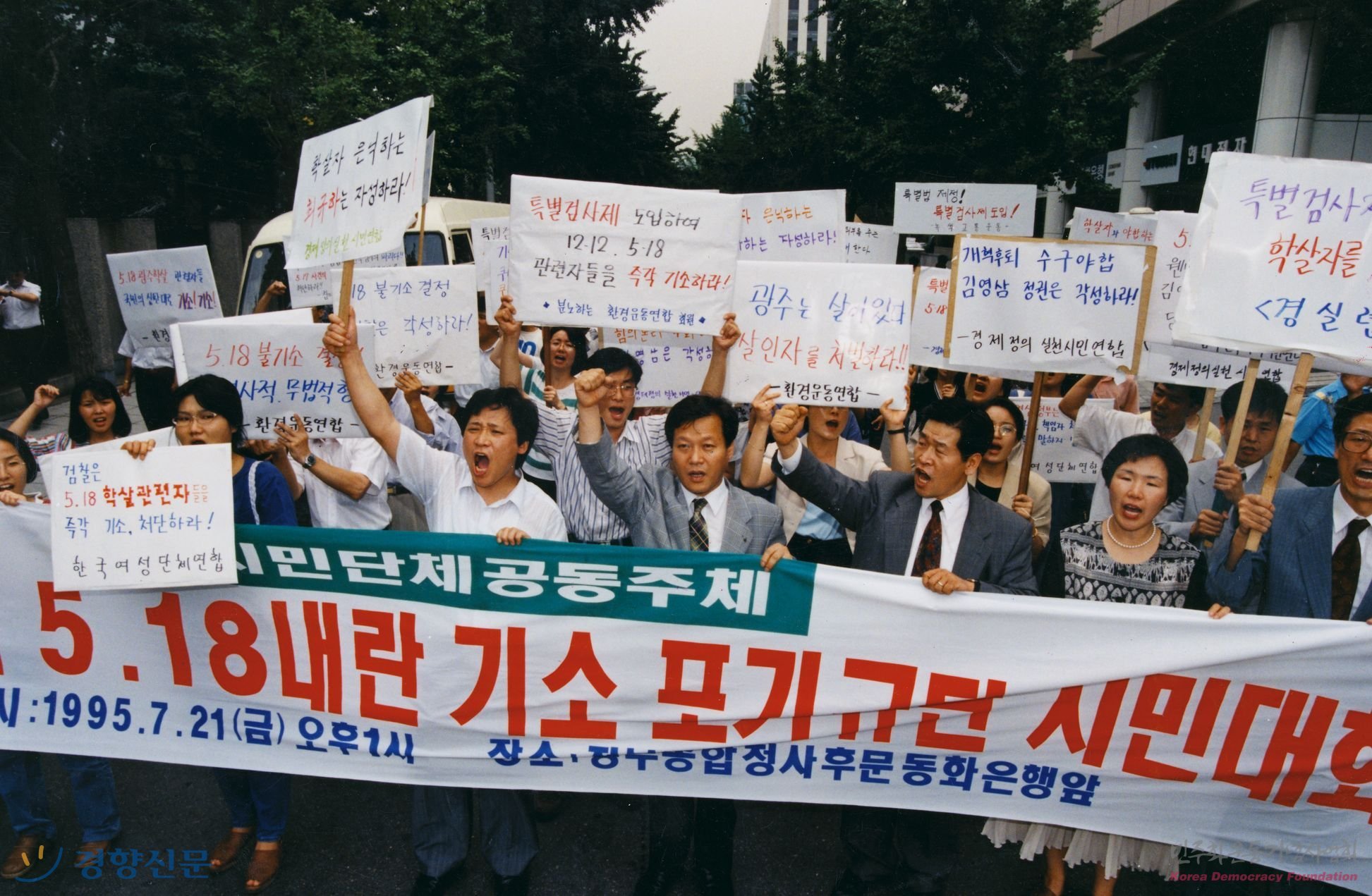 종합청사 후문에서 5.18사건에 대한 검찰의 불기소 결정에 항의 집회를 갖고 있는 경실련 등 시민단체