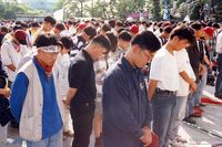 문익환목사의 연행에 항의하는 시위를 하는 연세대학교 학생들