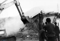 철거된 집 주변에서 가재도구를 수습하는 여인