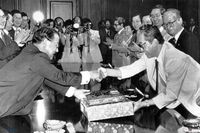 5.18 10년 기념식에 참석하여 분향하고 묵념하고 있는 김대중 총재