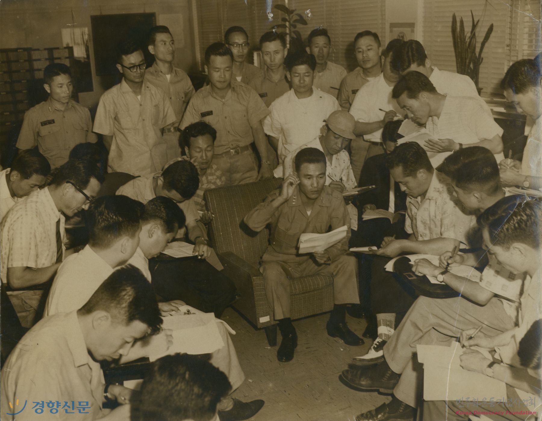 5개항의 언론정책을 발표하는 국가재건최고회의에서의 언론담당자의 모습