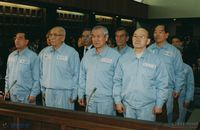 학생시위를 범죄행위로 규정하는 담화문 발표하는 안우만 법무부장관, 김우석 내무부장관, 안병영 교육부장관