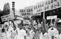 수서지구 특혜 분양 관련 규탄대회를 가진 민중당원
