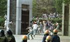 시청 앞 보도를 깨끗이 쓸고 있는 시민들 1