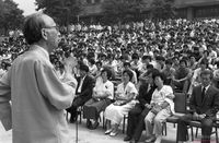 서로 어깨동무를 한 채 고 이한열 추모시위하는 연세대학교 학생들