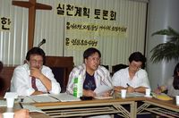 - 한나라당 정형근 의원이 14일 기자간담회에서 서경원 전의원 월북사건을 보도한 신문을 제시하며 서경원 전의원의 고문 주장을 반박하고 있다.