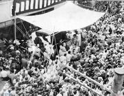 태극기와 성조기를 흔들며 레이건 미국 대통령의 방한을 환영하는 거리의 시민들