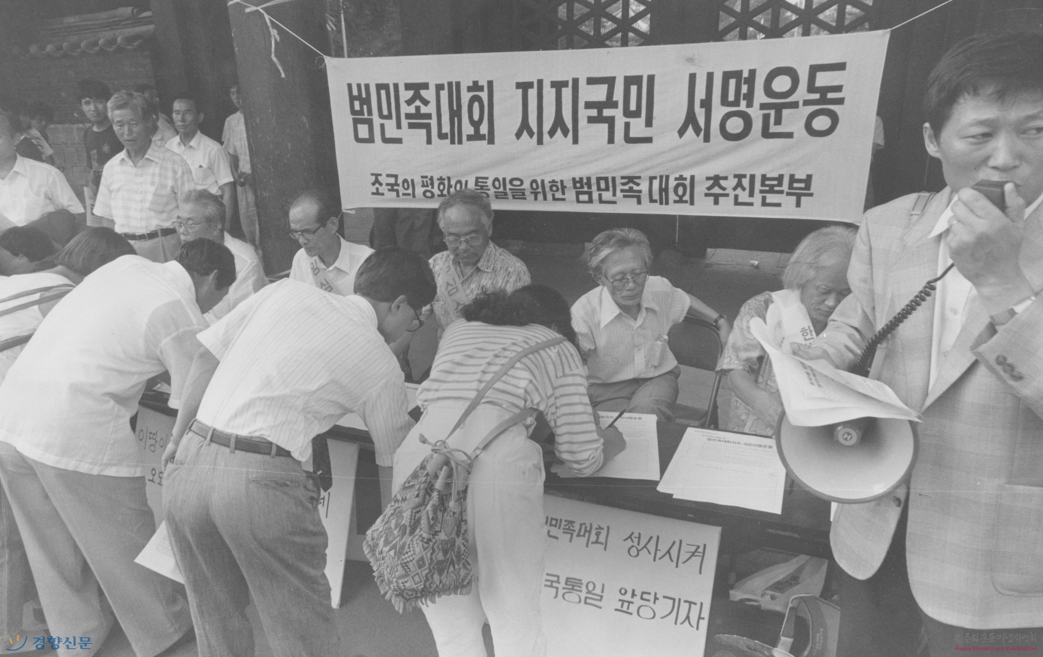 파고다 공원에서 범민족대회 지지 서명을 하는 시민들