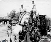 - 지방을 시찰하고 귀경한 이승만 대통령이 서울역 플랫폼에서 장관들의 영접을 받고 있다. <우로부터 최인규 교통부 장관, 김일환 내무부 장관, 좌로부터 오재경 공보실장, 신현확 부흥부 장관>. 1991년 2월 9일 경향신문 <제1공화국 국무회의(37)> 기사에 게재된 사진