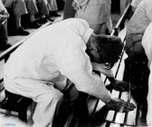 서울역 플랫폼에서 지방을 시찰하고 귀경한 이승만 대통령을 영접하고 있는 장관들