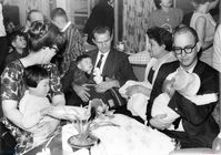 앞을 지나는 박정희 대통령의 차량을 향해 태극기와 성조기를 흔드는 환영인파 1
