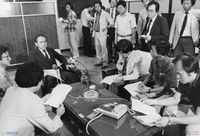취임 후 두번째 기자회견을 하고있는 윤보선 대통령