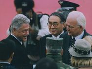 "99년 3차분 대북지원 물품 출항식"이라고 쓰인 현수막을 든 우리민족서로돕기운동 관계자들의 모습