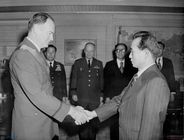 개성역의 여자 승무원의 노고를 치하하는 이영덕 한국적십자 수석대표