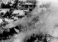 - 1992년 9월 28일, 구 중앙청 건물인 경복궁내 중앙박물관에서 열린 9..28수복 기념 국기게양식에서 한국전쟁 당시 중앙청을 탈환, 태극기를 게양했던 당시 해병소대장 박정모 씨(왼쪽)와 견습해병 최국방 씨가 그날의 감격을 재현하고 있다.