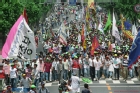 전대통령의 방미 일행을 거리에 도열하여 태극기를 흔들며 환송하는 시민들