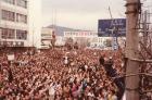 도청광장 희생자 23구 장례식에서 돈을 세고 있는 광주시민들