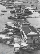 노임 후불 전표의 환금을 받으려고 모여든 근로자들