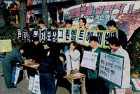 - 생산자 및 기증자가 ‘박용수’인 사진의 사용은 구매신청을 클릭하여 직접 사진 구매 신청을 하실 수 있습니다. 생산자 및 기증자가 ‘경향신문사’인 사진의 사용은 경향신문사 담당자(02-3701-1635)를 통해 구매하실 수 있습니다. 그 외의 생산자 및 기증자는 민주화운동기념사업회 사료관 담당자( h_jungwon@kdemo.or.kr / 031-361-9586 )에 문의바랍니다.