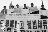 - 생산자 및 기증자가 ‘박용수’인 사진의 사용은 구매신청을 클릭하여 직접 사진 구매 신청을 하실 수 있습니다. 생산자 및 기증자가 ‘경향신문사’인 사진의 사용은 경향신문사 담당자(02-3701-1635)를 통해 구매하실 수 있습니다. 그 외의 생산자 및 기증자는 민주화운동기념사업회 사료관 담당자( h_jungwon@kdemo.or.kr / 031-361-9586 )에 문의바랍니다.