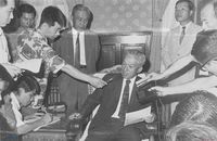 한일 제4차 각료회담 회의장인 조선호텔을 빠져나오고 있는 모습