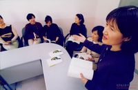 재일 한국인 법적지위 향상 및 지문날인거부를 위한 서명을 하는 시민들