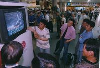 경찰의 최루탄 발포로 혼비백산하여 현장을 떠나는 성균관대 학생들