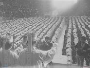 학생 교육단 후보생 임관식에서 학생 교육단 후보생에게 계급장을 달아주고 있는 최규하 국무총리