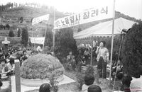 제3사관학교 졸업식에 참석하여 재학생들의 분열을 사열하는 김종필 국무총리