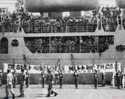 경희대 축제의 여왕으로 선출된 학생들의 행진 장면