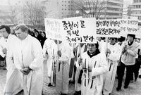 - 생산자 및 기증자가 ‘박용수’인 사진의 사용은 구매신청을 클릭하여 직접 사진 구매 신청을 하실 수 있습니다. 생산자 및 기증자가 ‘경향신문사’인 사진의 사용은 경향신문사 담당자(02-3701-1635)를 통해 구매하실 수 있습니다. 그 외의 생산자 및 기증자는 민주화운동기념사업회 사료관 담당자( h_jungwon@kdemo.or.kr / 031-361-9586 )에 문의바랍니다.