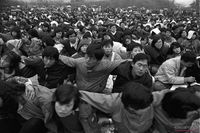 사람들에 둘러싸여 있는 김영삼, 김대중
