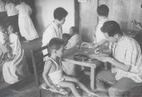 자녀의 합격을 위해 고사장 밖에서 염불을 외우는 어머니