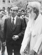 공화당 행사에 참석하여 박수치는 공화당원들에게 손을 들어 화답하는 박정희 대통령